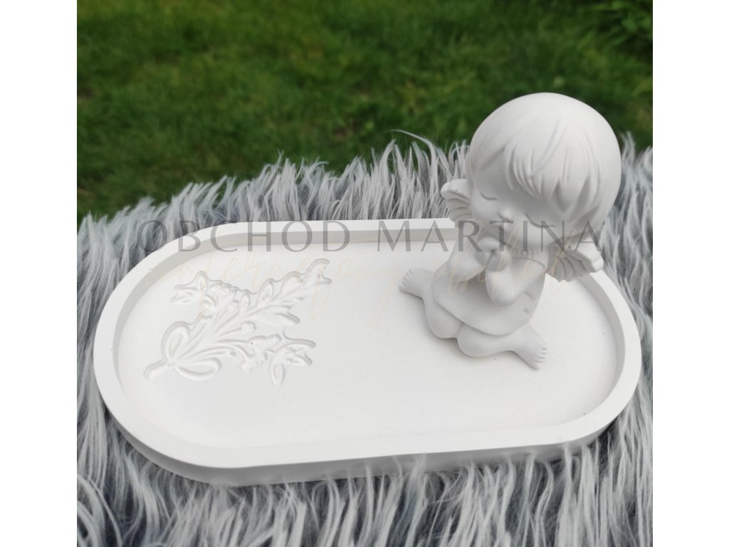 Dárkový set s andílkem na tácku z umělého kamene – jemná dekorace s duší