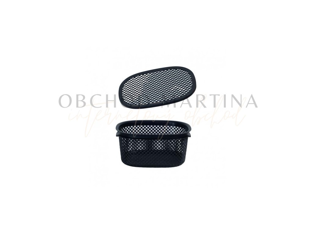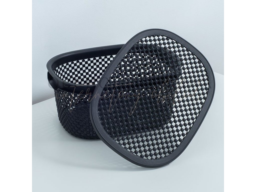 Košík má praktické víko a elegantní ažurový vzor, který dodává estetiku a zajišťuje, že obsah zůstane skrytý a chráněný.