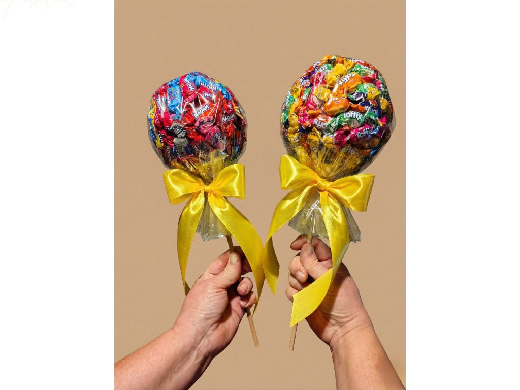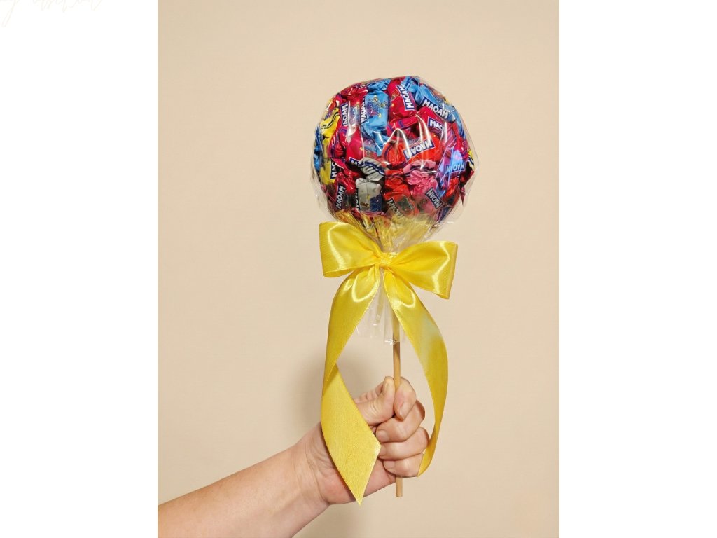 Na výběr jsou varianty z bonbónů MAOAM nebo TOFIX, které potěší děti i dospělé. Skvělé jako dárek k narozeninám, svátku, Valentýnu, pro školáky, kolegy nebo jen tak pro radost. Lízátko slouží nejen jako sladkost, ale i jako efektní dárková dekorace.