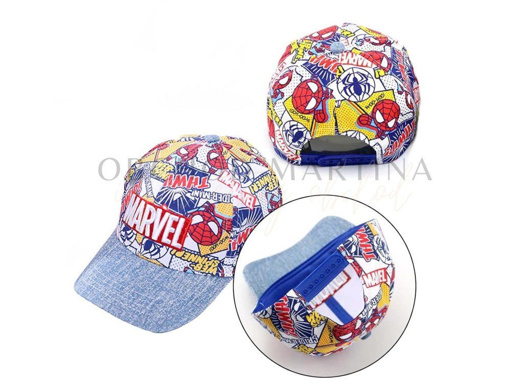 Vrchní část čepice zdobí pestrý vzor s motivy Spidermana, komiksovými nápisy a výrazným logem MARVEL vepředu. Design působí energicky a zábavně, ideální pro každodenní dobrodružství.
