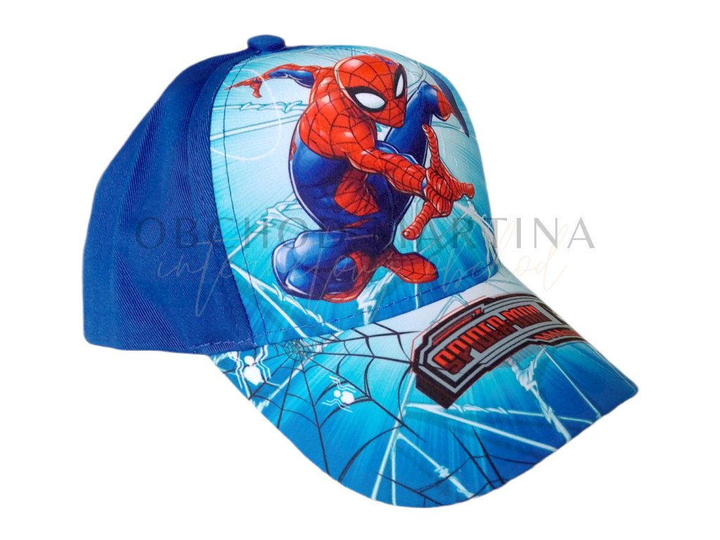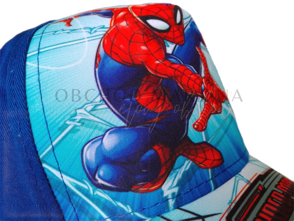 Na čelní části čepice a kšiltu dominuje barevný akční potisk Spidermana ve skoku, připraveného vystřelit pavučinu. Modré a červené tóny jsou laděny do komiksového stylu a přitahují pozornost svým dynamickým zpracováním.