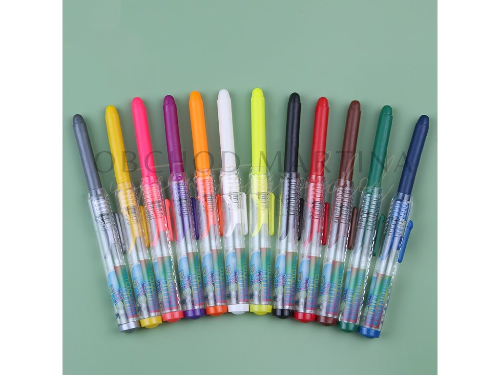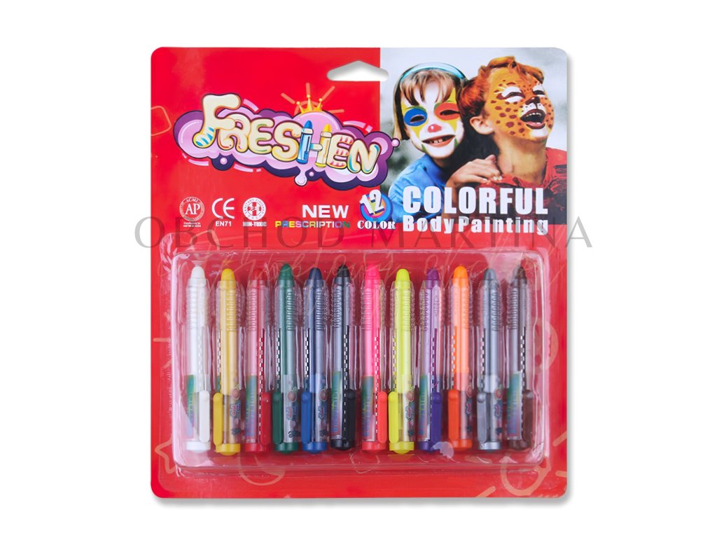 Dětská sada barev na obličej v tužce obsahuje 12 základních barev, které jsou ideální pro hravé líčení, karnevaly, oslavy nebo školní akce.