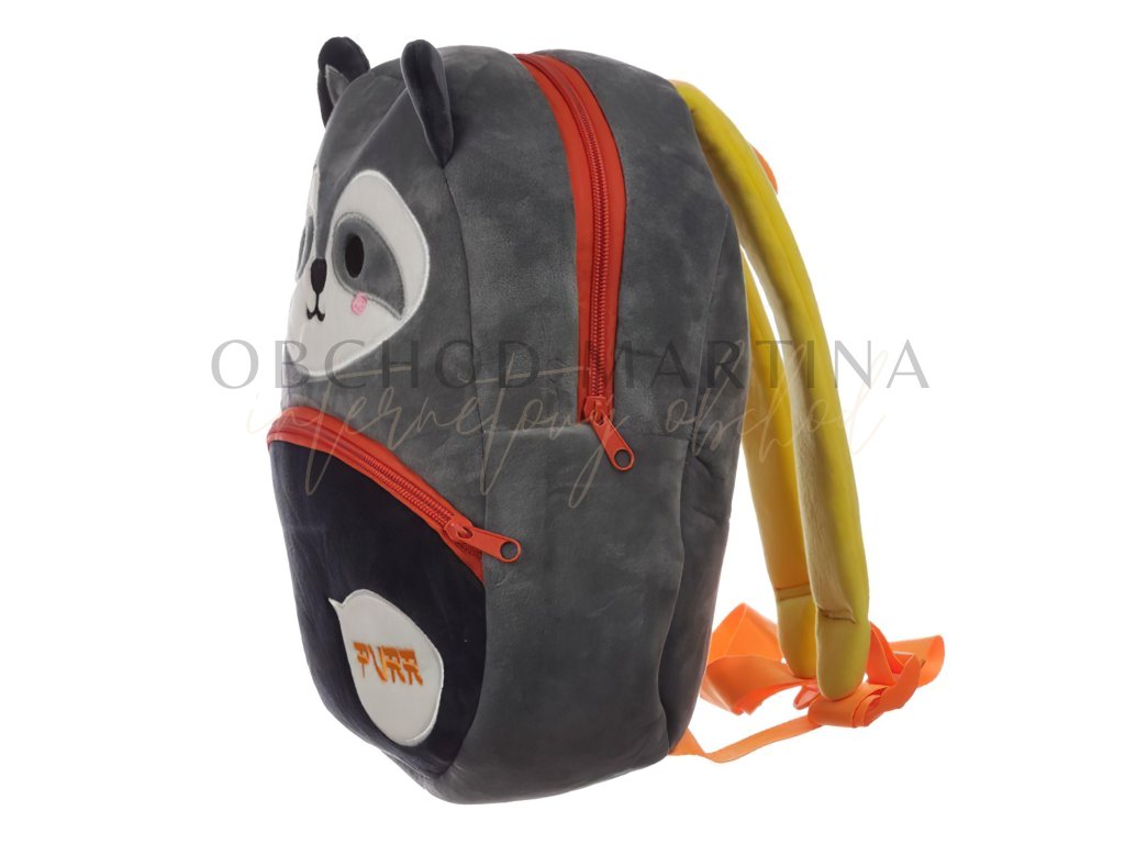 Buďte připraveni na dobrodružství s tímto měkkým a roztomilým batohem a mývalím kamarádem.