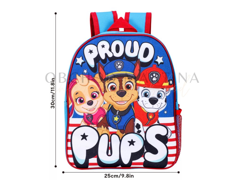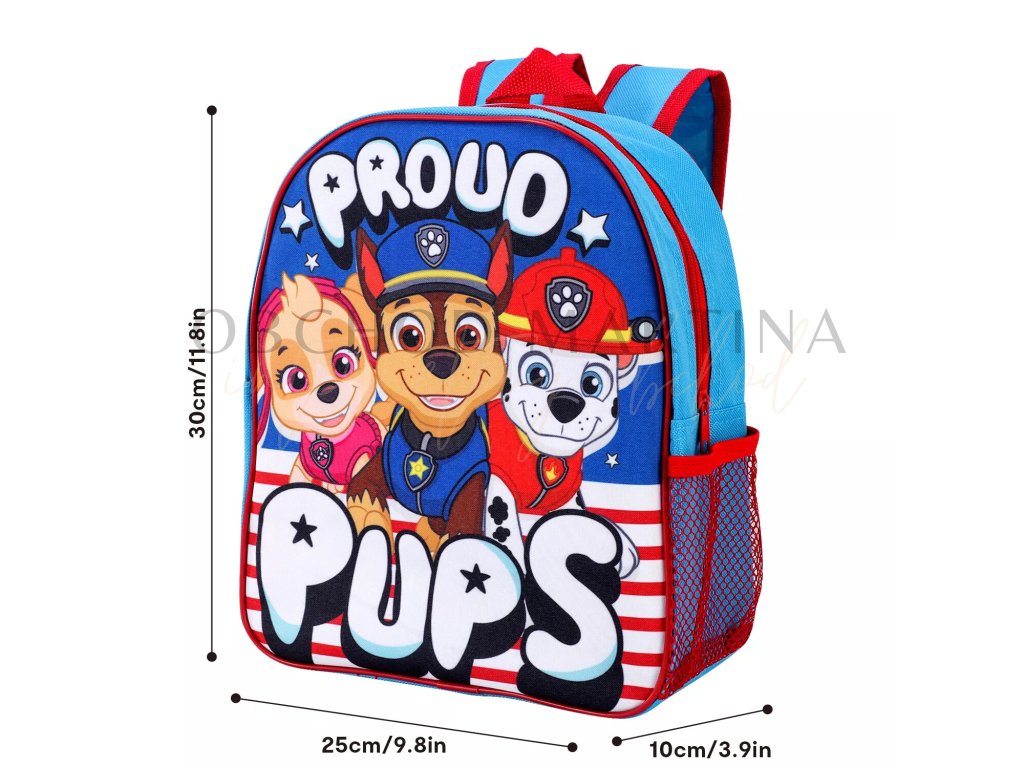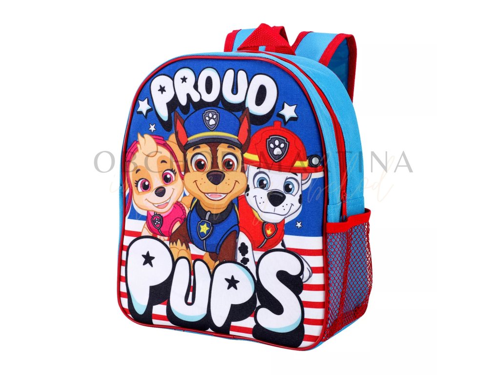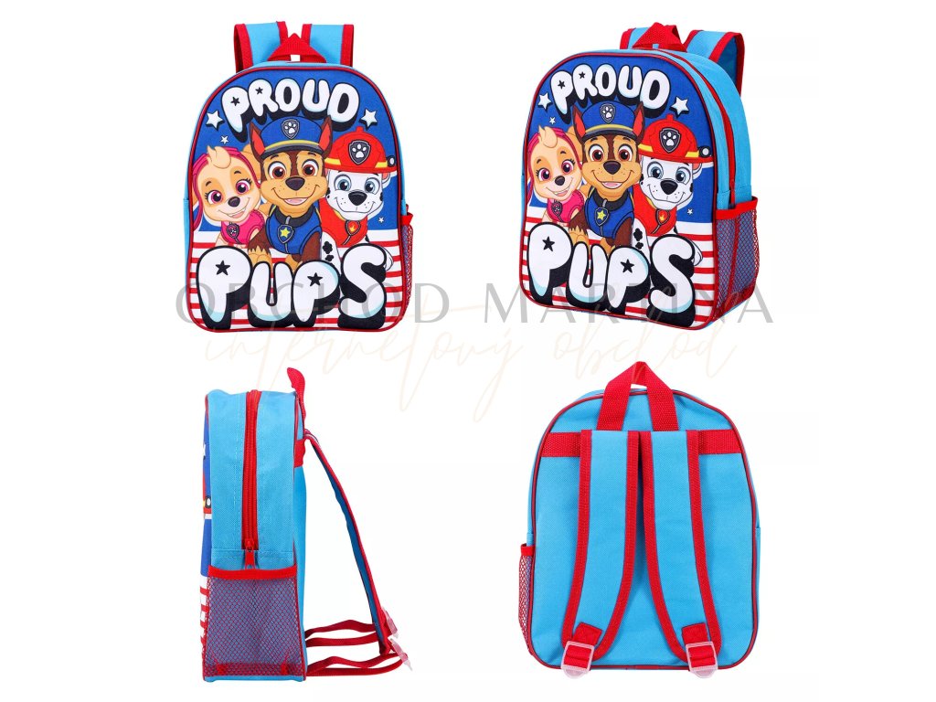Dětský batoh s motivem oblíbených hrdinů z animovaného seriálu Tlapková patrola je perfektním doplňkem pro každodenní dobrodružství vašich malých průzkumníků. Na přední straně batohu jsou vyobrazeni hlavní hrdinové – Chase, Marshall a Skye – v živých barvách, které okamžitě upoutají pozornost. Nápis „Proud Pups“ dodává celkovému designu hravý a motivační charakter, který děti inspiruje k tomu, aby byly stejně odvážné a týmově zaměřené jako jejich oblíbení psí záchranáři.