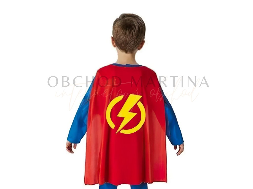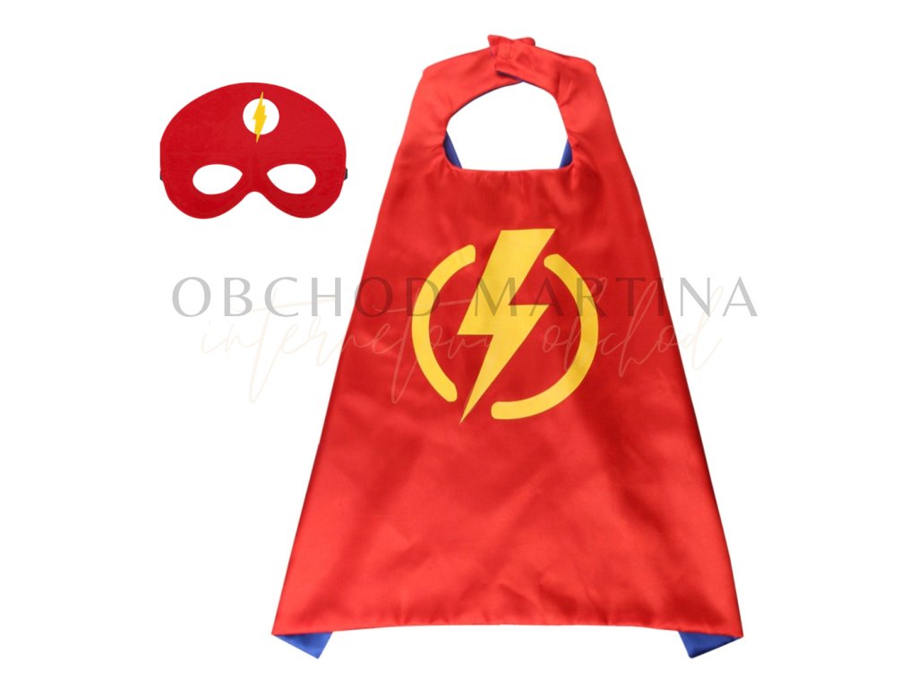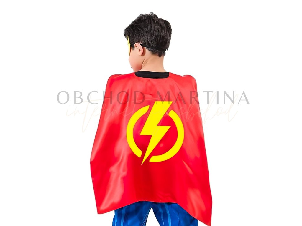 Sada obsahuje červený plášť se žlutým symbolem blesku a červenou masku s motivem blesku, díky čemuž se děti snadno přenesou do světa hrdinských dobrodružství.