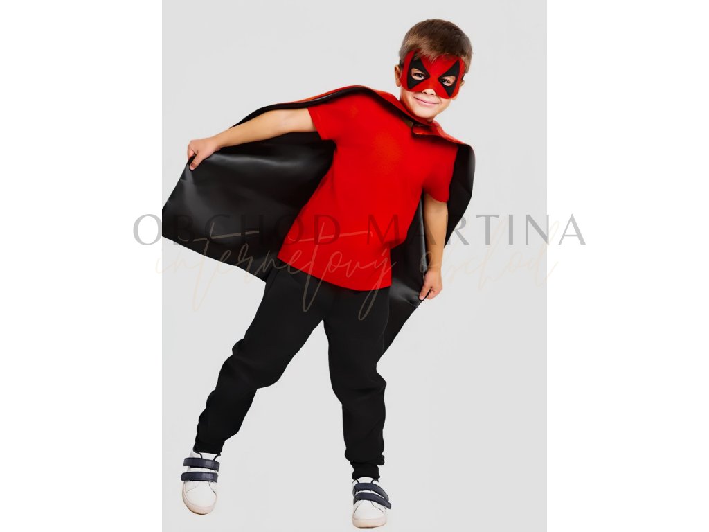 Materiál pláště je lehký a lesklý polyester, který je nejen příjemný na nošení, ale také odolný proti pomačkání. Maska je z měkkého filcu, který netlačí a dobře sedí na dětské hlavě, aniž by omezoval pohyb nebo výhled.
