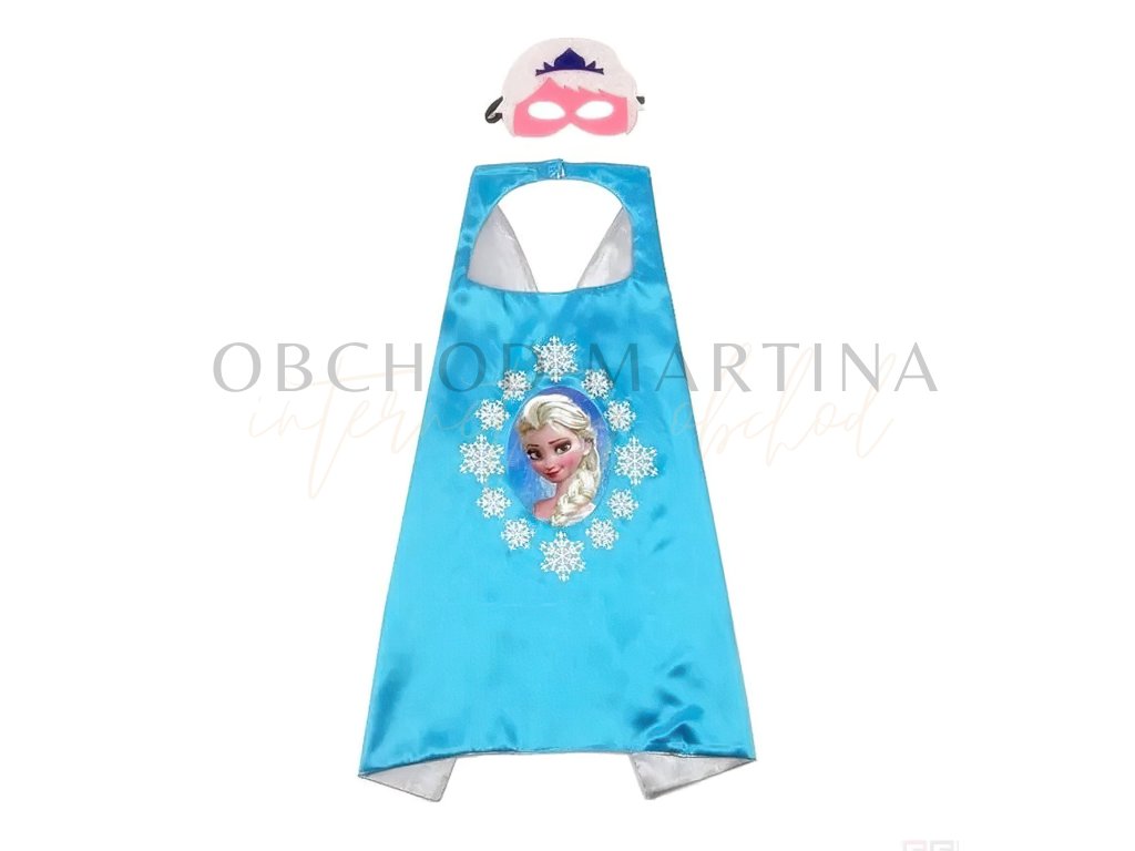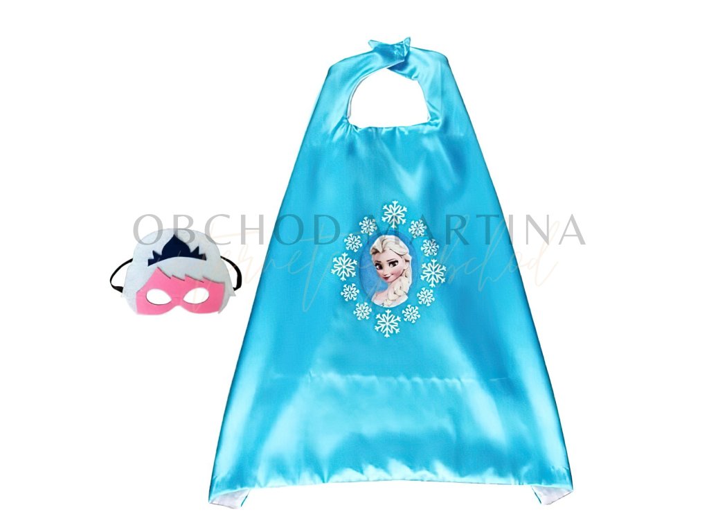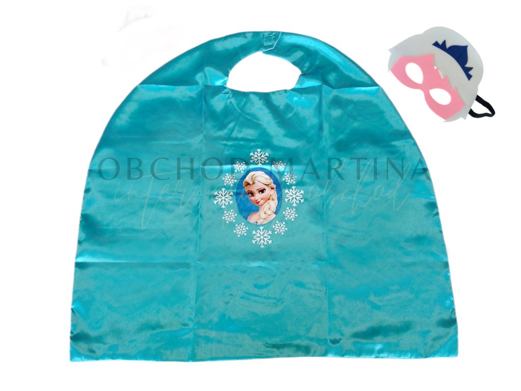 Součástí balení je tyrkysově modrý plášť s obrázkem Elsy obklopeným vločkami, který evokuje její ledové schopnosti. K tomu ladí barevná maska s motivem bílo-modrých vlasů a růžových očnic, která dodává převleku hravý šmrnc.