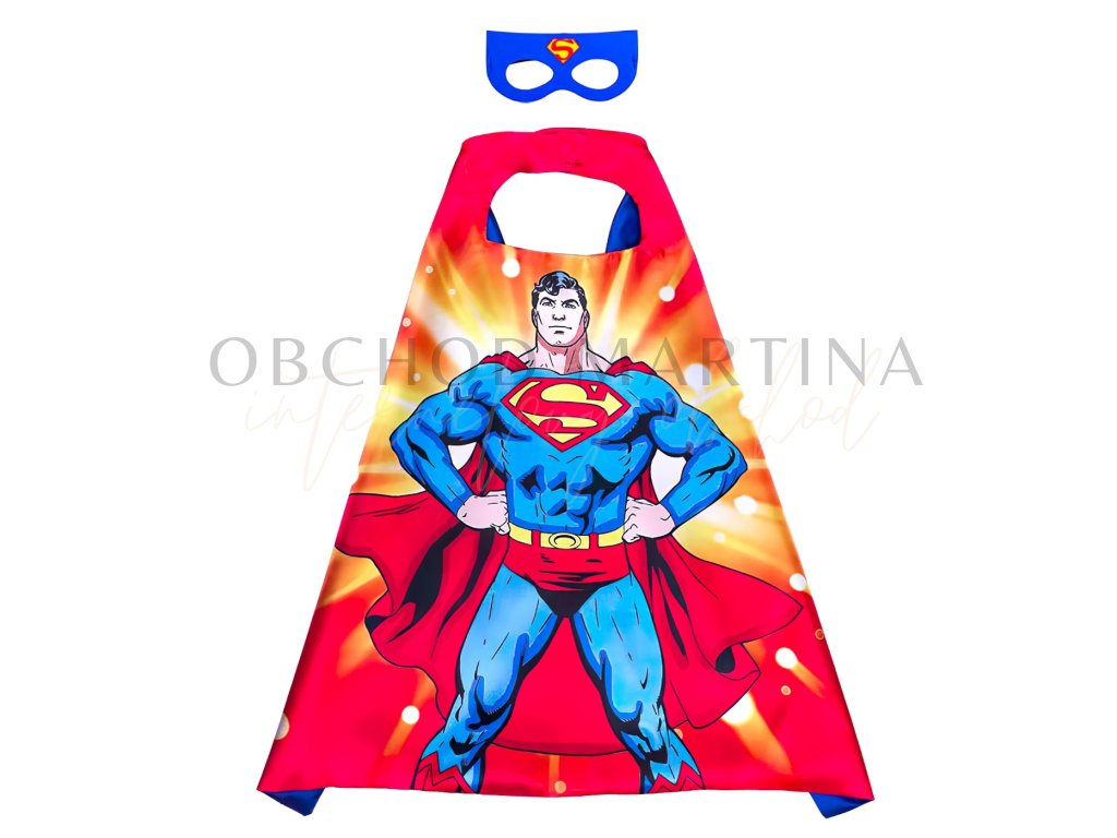 Sada obsahuje výrazný plášť s potiskem legendárního Supermana ve své klasické póze a modrou masku se symbolem „S“, díky čemuž se dítě snadno vžije do role zachránce světa.