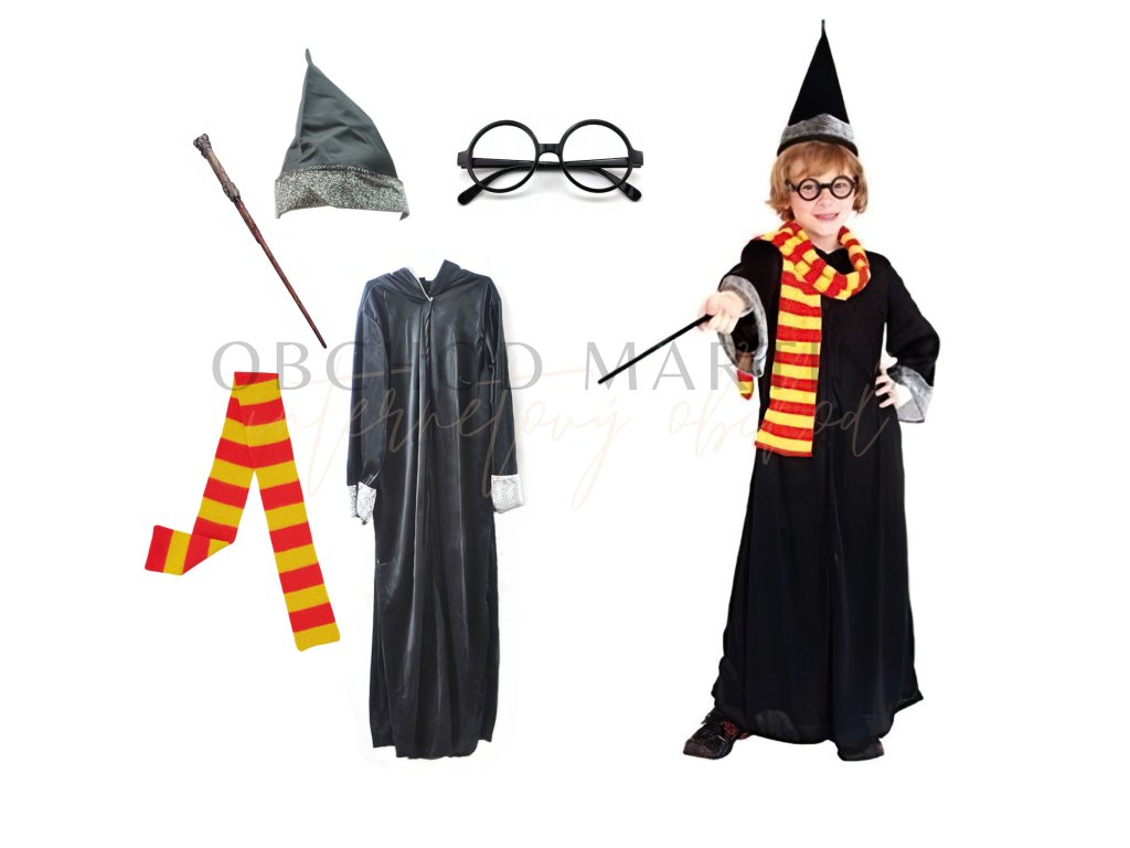 Tento dětský kostým je inspirovaný postavou Harryho Pottera, hlavního hrdiny z populární knižní a filmové série.