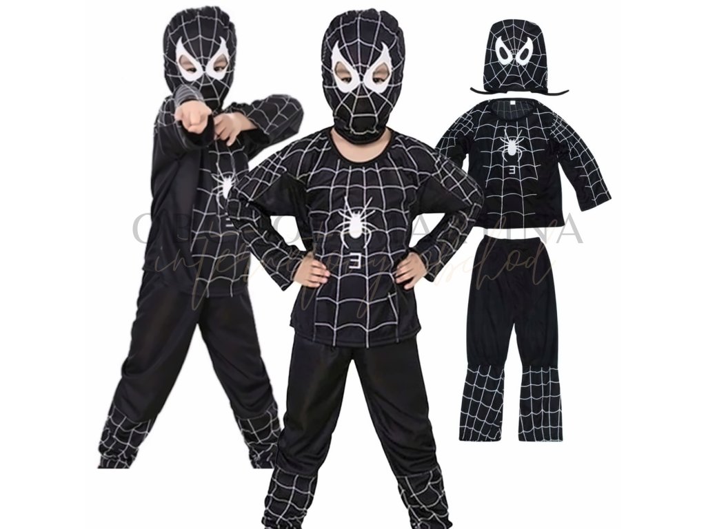 Dětský karnevalový kostým Spiderman v černém provedení. Tento kostým je navržen tak, aby napodoboval vzhled Spider-Mana, jednoho z nejoblíbenějších superhrdinů všech dob a všech z Marvelovských komiksů. Tento kostým je ideální pro dětské párty, Halloween, karnevaly nebo jen pro běžné hraní. Vaše dítě se může cítit jako skutečný superhrdina, zároveň si rozvíjet svou kreativitu a fantazii.