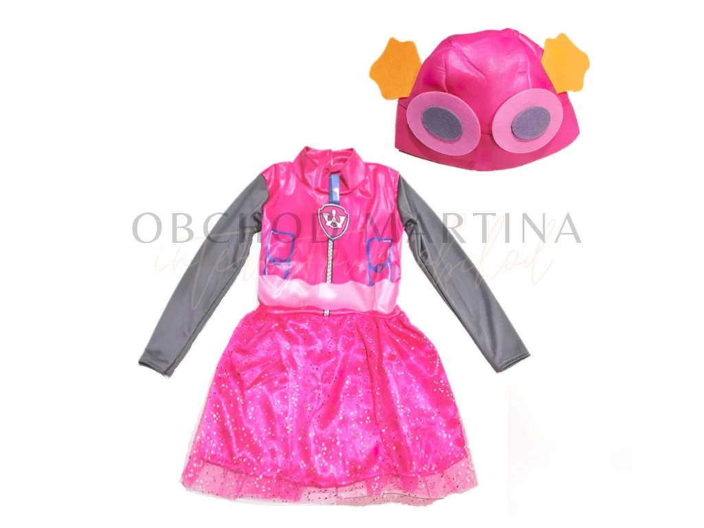 Kostým je laděný do ikonických růžových a šedých tónů, které přesně odpovídají oblečení fenky Skye, a umožní dětem naplno se vžít do role své oblíbené postavy.