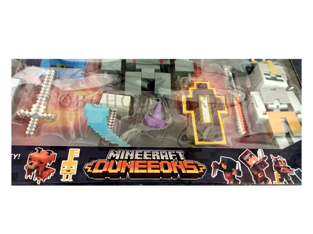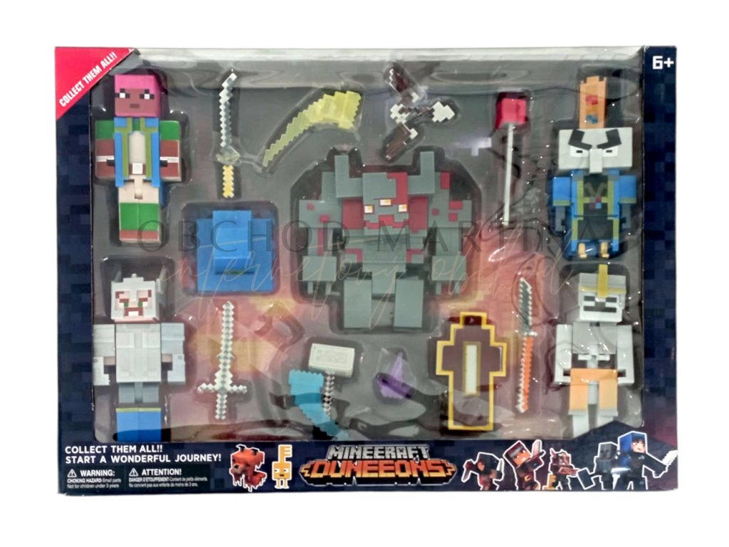 - V kolekci najdete známé postavy a příšery, jako jsou Skeletony, Golemy, a další zlověstné nepřátele, kteří tvoří základ herního prostředí Minecraft Dungeons.