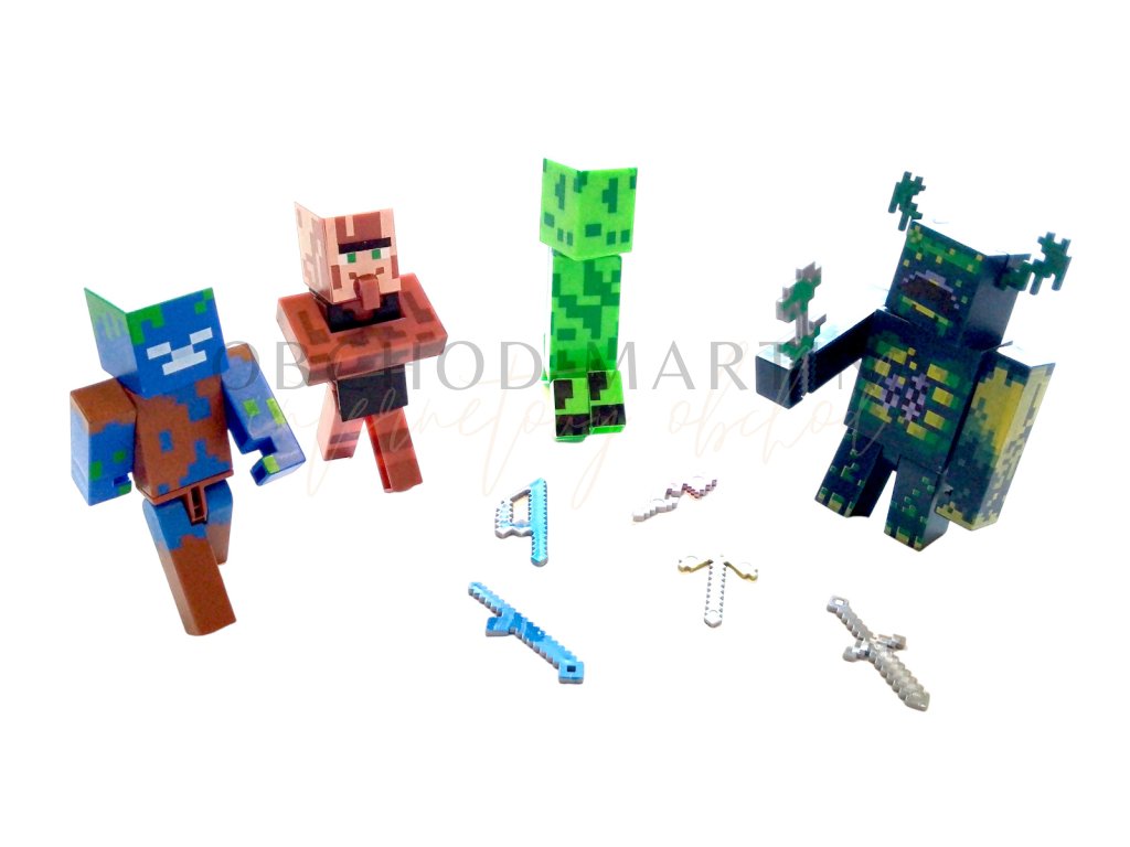 Kromě samotných figurek obsahuje kolekce i několik pixelově stylizovaných zbraní a doplňků, jako jsou meče, krumpáče a další nástroje, které obohacují herní scénáře. Děti si tak mohou vytvořit vlastní souboje nebo napodobovat epické momenty ze hry Minecraft. Figurky mají pevnou konstrukci a jsou ideální jak pro hraní, tak pro vystavení na poličce.