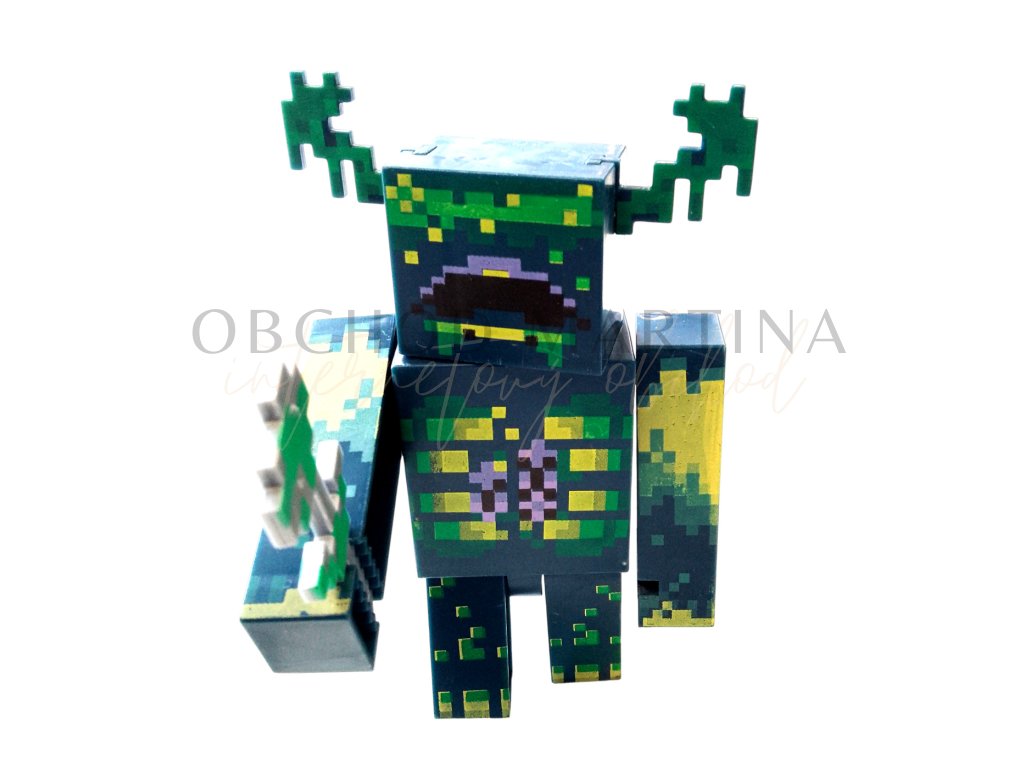 Hlavní hvězdou sady je impozantní Warden, mohutný strážce temných hlubin, jehož charakteristické pixelové prvky dokonale odrážejí jeho herní podobu. Figurky jsou vyrobeny z plastu a věrně zachovávají ikonický styl Minecraftu.