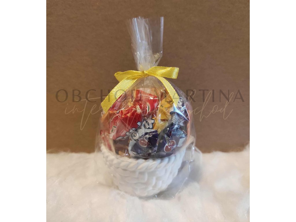 Košíček je ručně vyroben z umělého kamene, o průměru 5,5 cm, výška 3,5 cm.