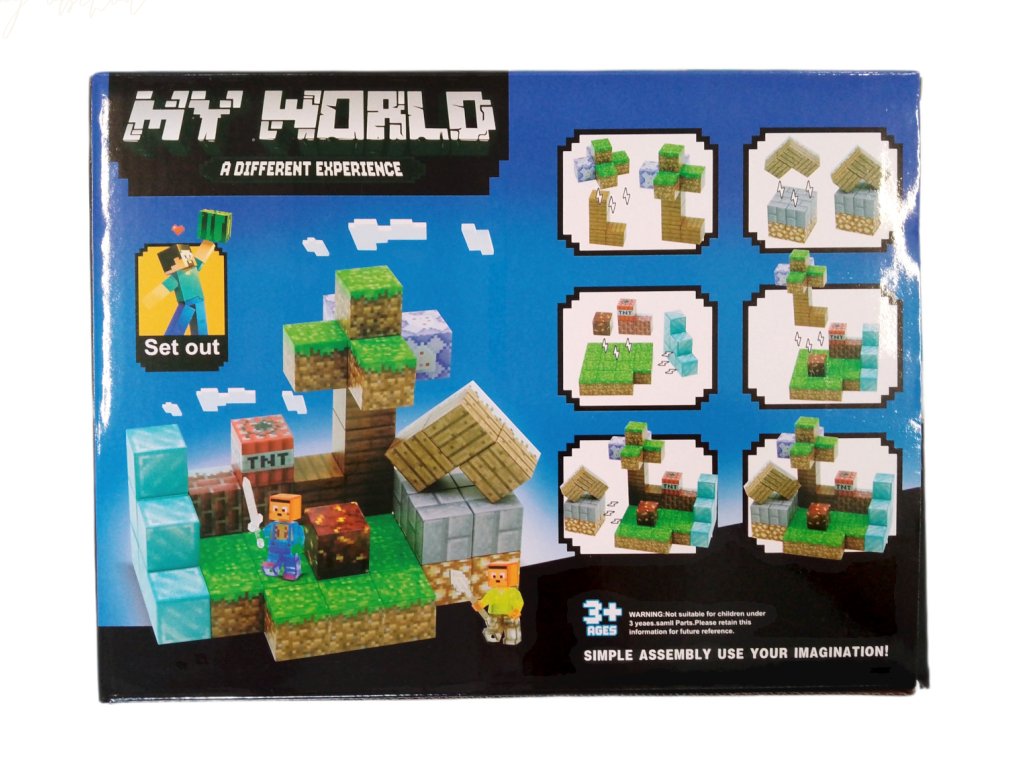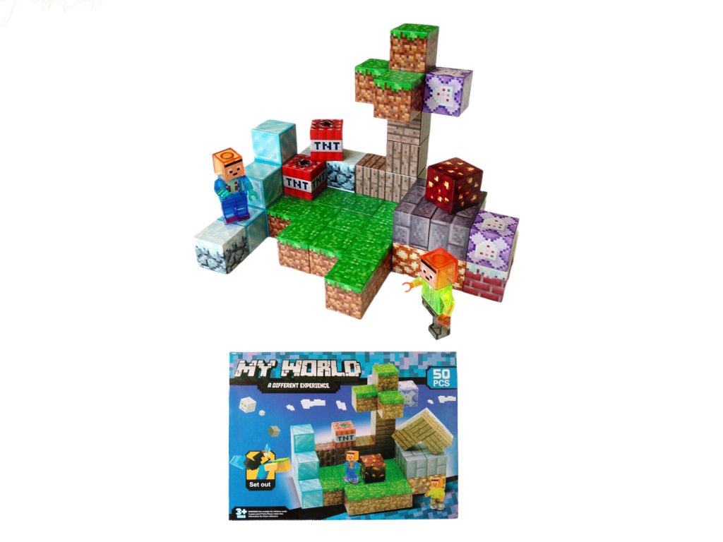 Stavebnice obsahuje 50 magnetických dílků, které se snadno spojují díky vestavěným magnetům. Součástí balení jsou dvě figurky postav ve stylu pixel art a různé stavební bloky jako ledové kostky, trávníkové bloky, TNT a další texturované kostky, které věrně kopírují vzhled z populární hry.