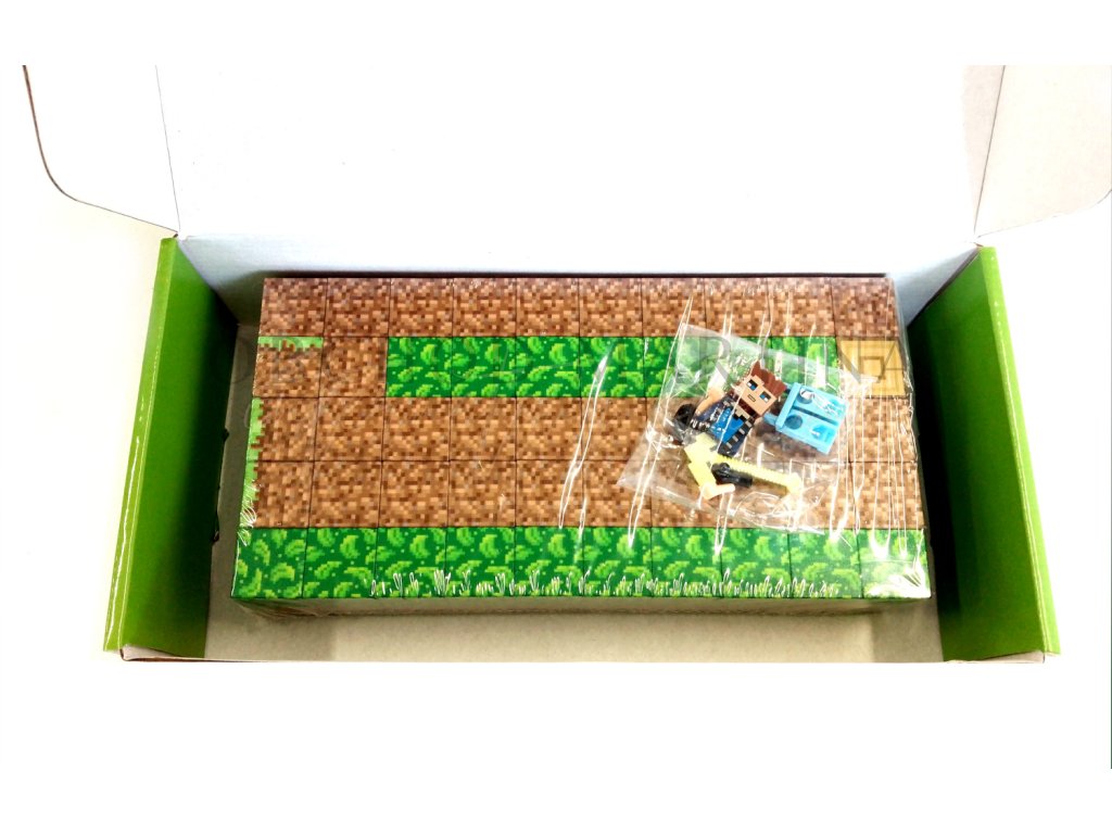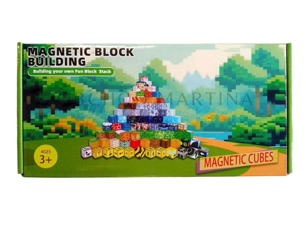 Součástí je i figurka s krumpáčem, která dodává hře dobrodružný prvek a podporuje dětskou fantazii při vytváření vlastních příběhů. Stavebnice obsahuje magnetické kostky s realistickými potisky různých herních textur – tráva, voda, kámen, dřevo nebo bedny. Díky silným vnitřním magnetům se jednotlivé díly snadno spojují, drží tvar a umožňují stabilní stavby.