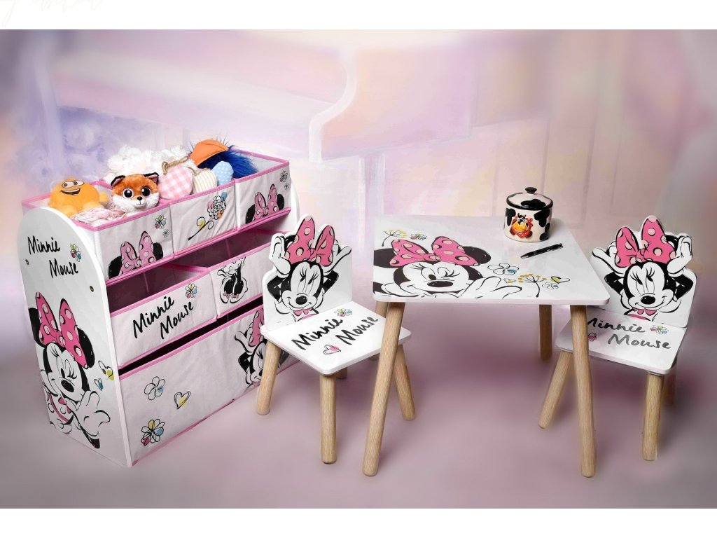 Nádherný barevný dětský regál na hračky s usměvavou tváří Myšky Minnie z edice Disney, potěší všechny holčičky. Nudné uklízení hraček se může stát zábavou. Organizér je ideální k uskladnění hraček, obsahuje 6 plátěných boxů, řešených tak, aby si děti mohly ukládat hračky samy.
