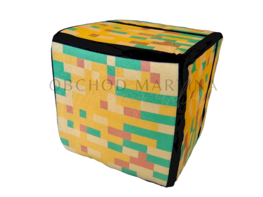 Kostka je vyrobena z měkké, lehké pěny, která je ideální pro bezpečné dětské hraní nebo jako pohodlný doplněk do domácnosti. Textilní povrch s kvalitním potiskem odolává opotřebení a díky ostrým barvám si zachová svůj původní vzhled i při každodenním používání.