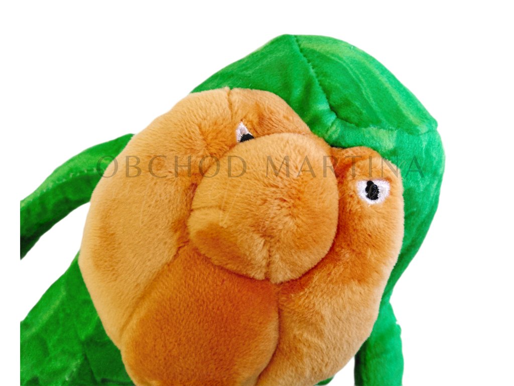 Tato hračka je vyrobena z měkkého plyše příjemného na dotek. Kombinace zeleného a hnědého materiálu působí kontrastně a zábavně, přičemž švy jsou pevné a odolné vůči častému mačkání a tahání. Díky kvalitnímu zpracování je vhodná jak pro děti, tak i jako vtipný dárek pro dospělé.