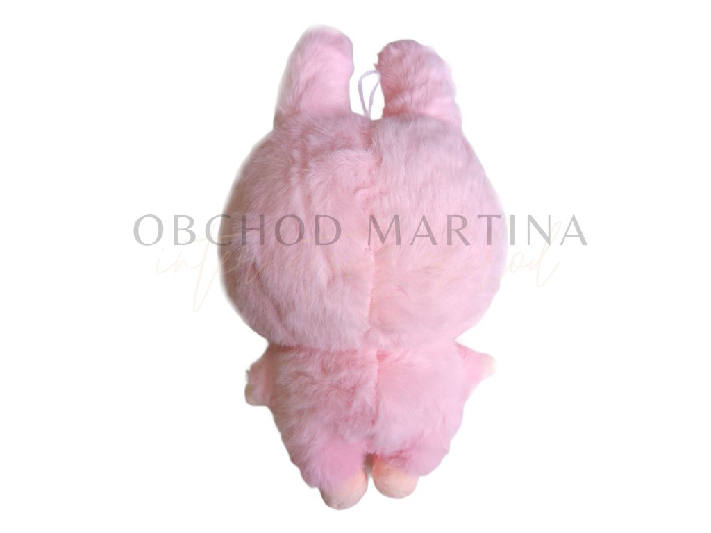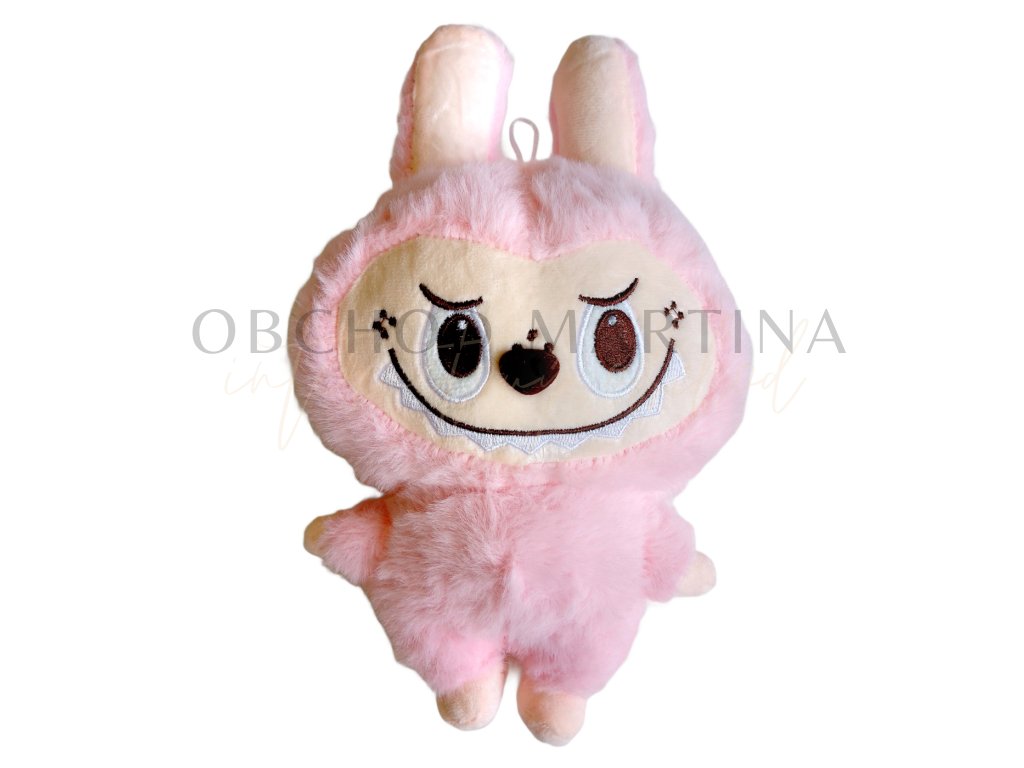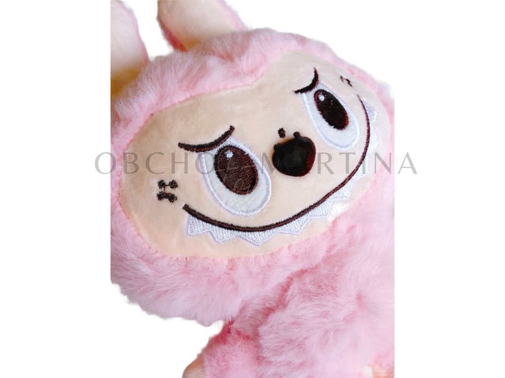 Plyšová hračka ve stylu Labubu Lychee Berry v růžovém provedení je sladká na pohled, ale nese si typický drzý výraz této populární postavičky.