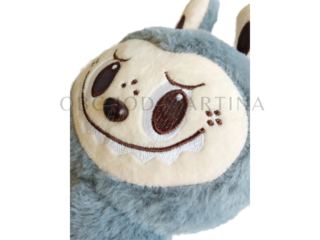 Typický Labubu výraz s velkými vyšívanými očima, pihami a lišáckým úsměvem zůstává zachován i v této verzi. Špičaté ouška a kompaktní tvar těla doplňují celkový roztomilý, ale ne úplně tradiční vzhled, který je pro Labubu charakteristický.