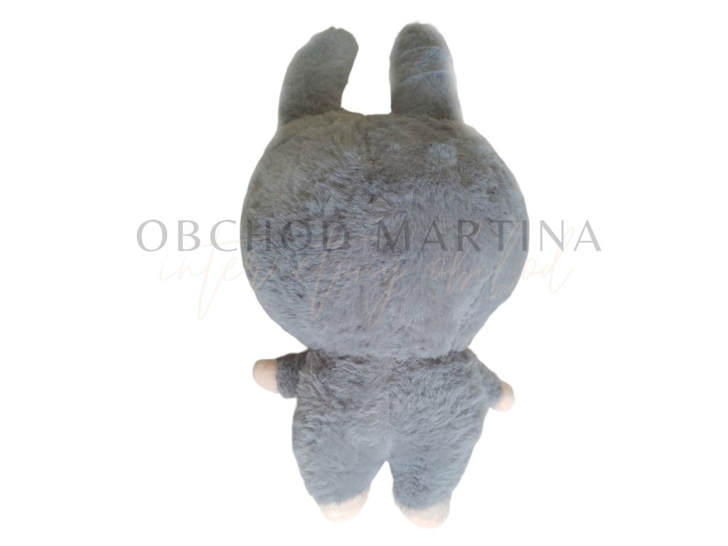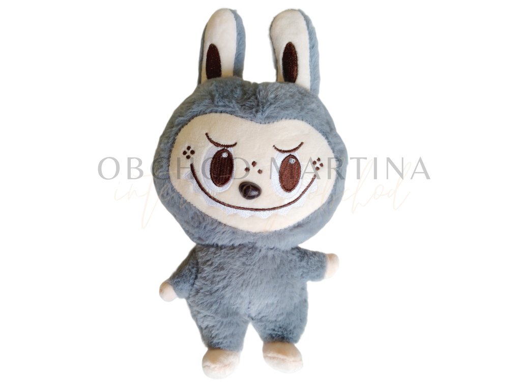 Plyšová hračka ve stylu Labubu Sesame Bean v šedé barvě zaujme svým rošťáckým výrazem a jemně minimalistickým provedením.