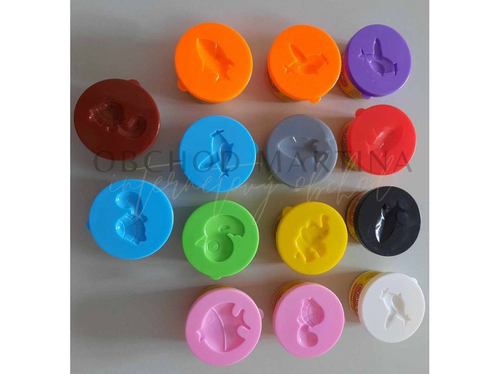 - 15 x box s plastelínou a formičkou zvířátka na víčku