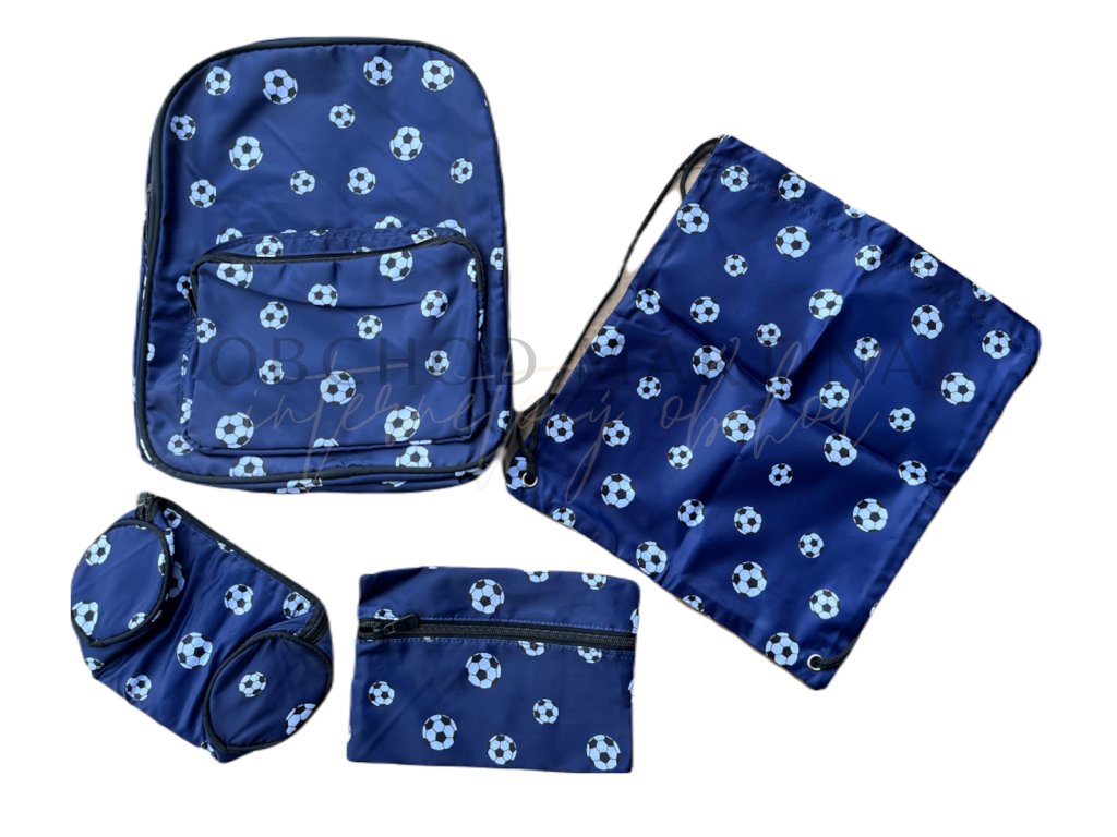 Sada pro školáky obsahující batoh, peněženku, pouzdro a batoh ve stylu vaku, je ideální volbou pro každého školáka, který má rád fotbal. Na batohu je atraktivní fotbalový motiv, který zaujme a dodá styl. Batoh je vhodný pro běžné nošení školních potřeb jako jsou knihy, sešity a psací potřeby i pro sportovní využití na kroužky a různé výlety. Pouzdro nabízí dostatek prostoru pro uložení tužek, fix, gum a dalších malých školních pomůcek. Vak na záda je lehký a praktický pro sportovní oblečení nebo obuv, vhodný pro tělesnou výchovu nebo volnočasové aktivity. Batoh obsahuje dvě přihrádky - velkou a menší pro drobné předměty. Obě jsou lehce zapínatelné na zip.