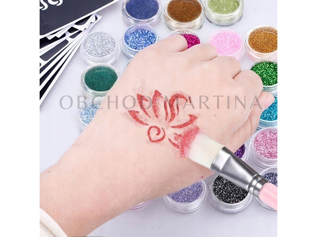 Naše sada obsahuje lepící šablony, které usnadňují vytváření krásných a kreativních vzorů na tělo a obličej. Šablony jsou jednoduše použitelné a díky nim mohou děti snadno vytvořit své vlastní umělecké dílo. Pohodlnými štětci, barvami a laky na nehty v sadě mohou děti propustit svou kreativitu a přidat svým kostýmům nádech třpytu.