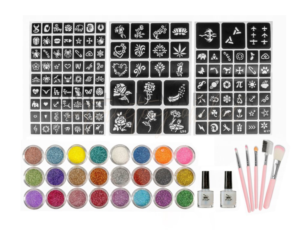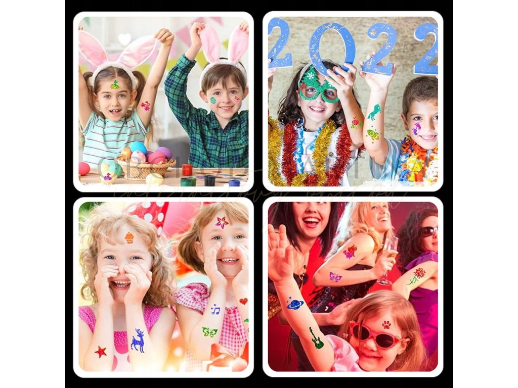 Oživte kouzlo dočasného tetování a třpytivého líčení s naší sadou tetování na tělo, obličej a nehty pro děti. Tato zábavná a bezpečná sada je ideálním doplňkem ke kostýmům a přináší dočasný lesk a kouzlo do každodenního hraní.