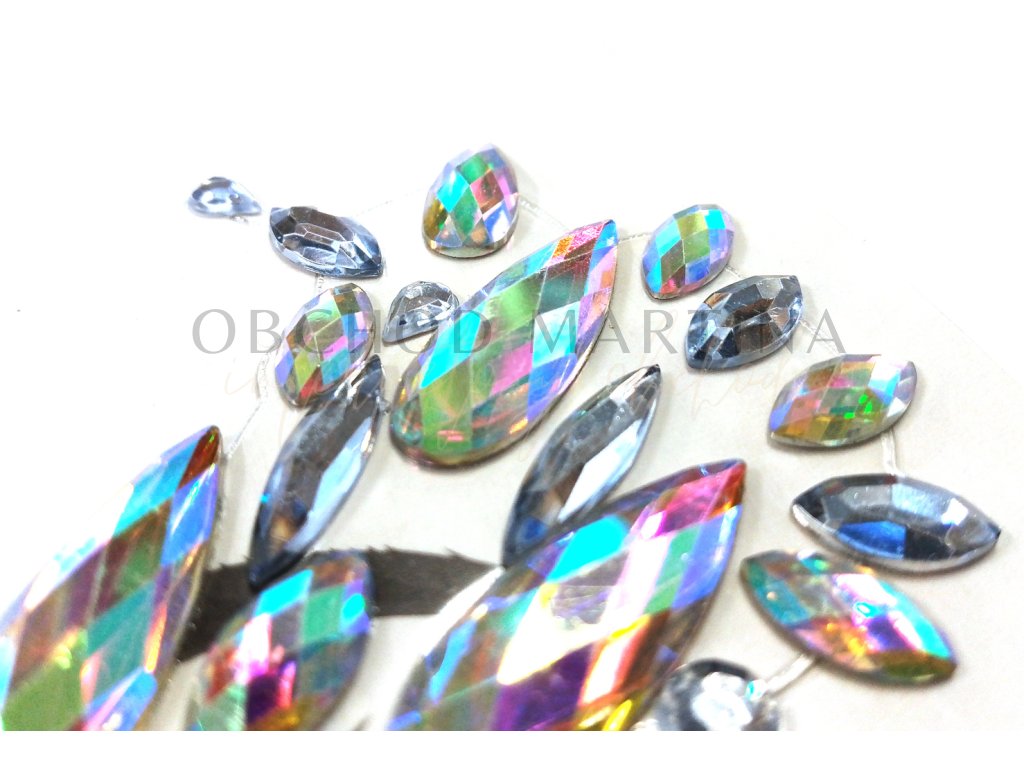 Vyrobena z kvalitních akrylových materiálů, které jsou lehké, ale přesto velmi efektní. Samolepicí vrstva je šetrná k pokožce a umožňuje pohodlné nošení po celý večer. Odstranění je snadné a nezanechává stopy ani podráždění.