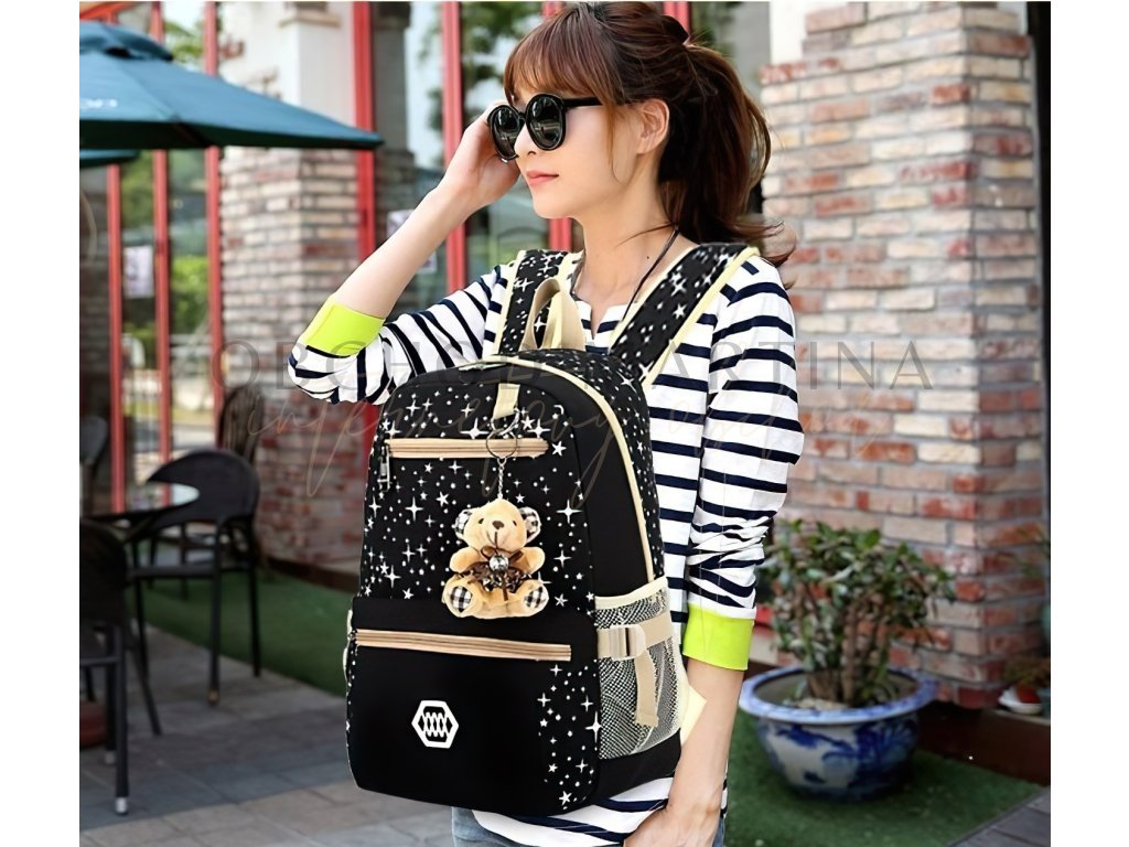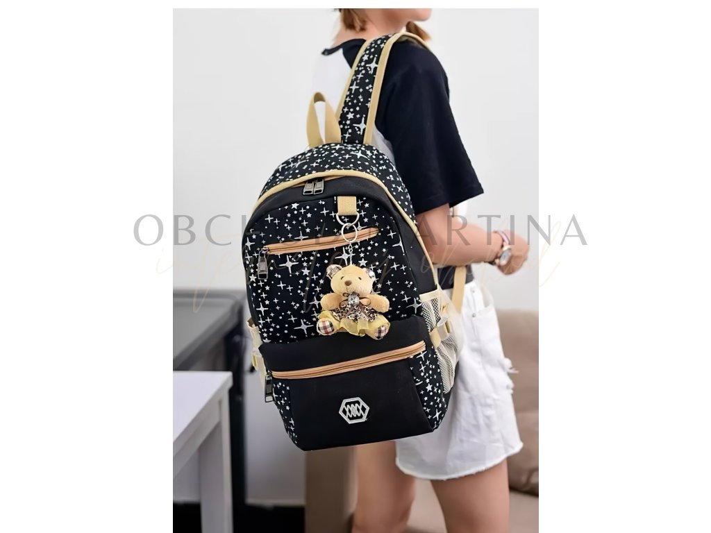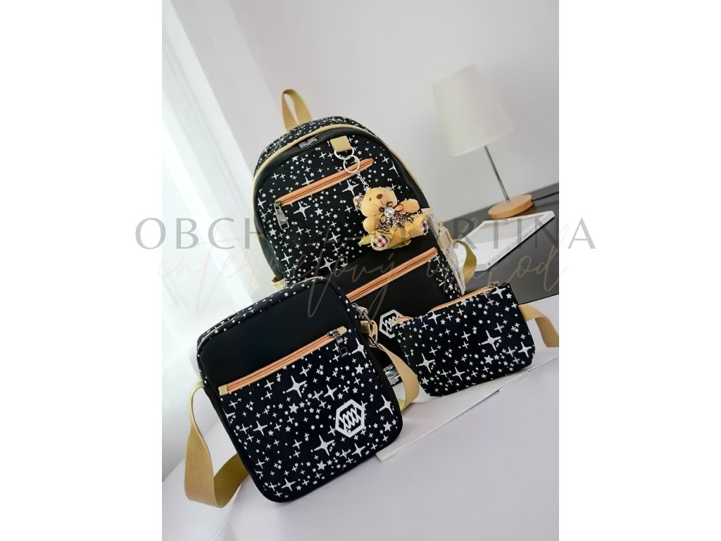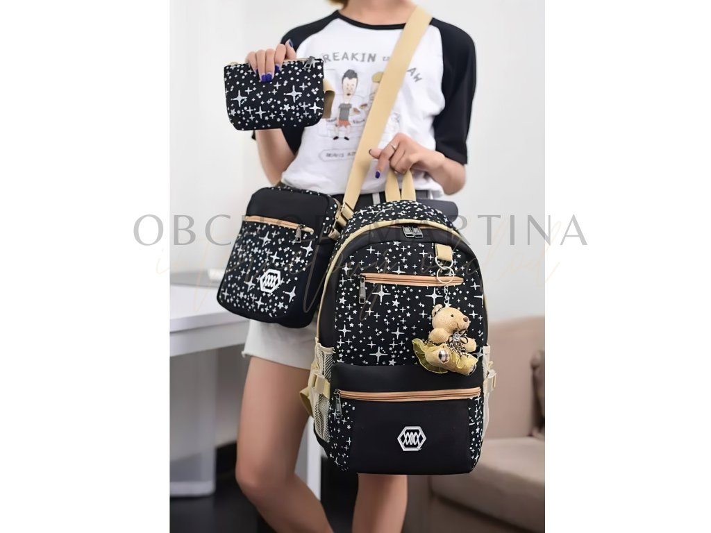 Školní dětský batoh 3v1. Pohodlný , funkční s taštičkou a toaletní taštičkou. Školní batoh se skládá z mnoha kapes, které umožní lepší organizaci prostoru. Po stranách dvě kapsy na umístění láhve s vodou. Zádové a ramenní popruhy zajišťují pohodlí při používání a rovnoměrné rozložení zátěže na záda dítěte. . Batoh je vyroben s odolného materiálu.