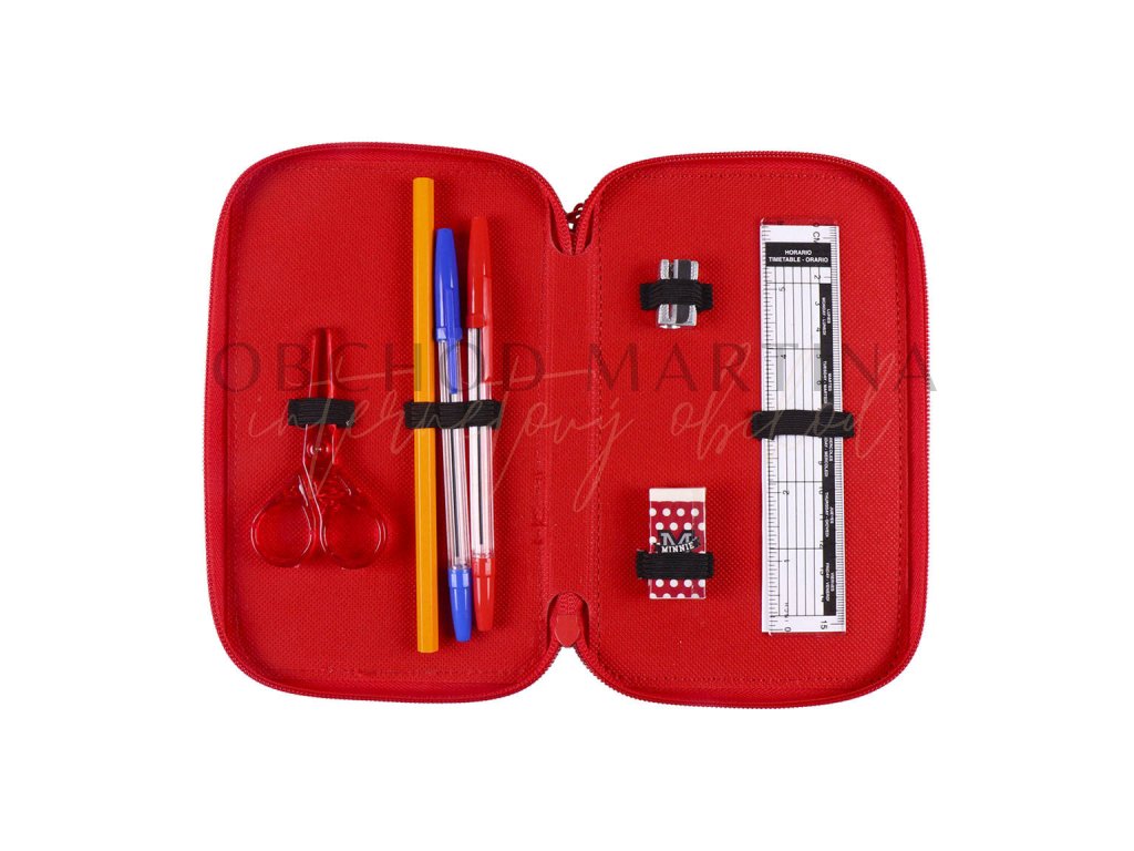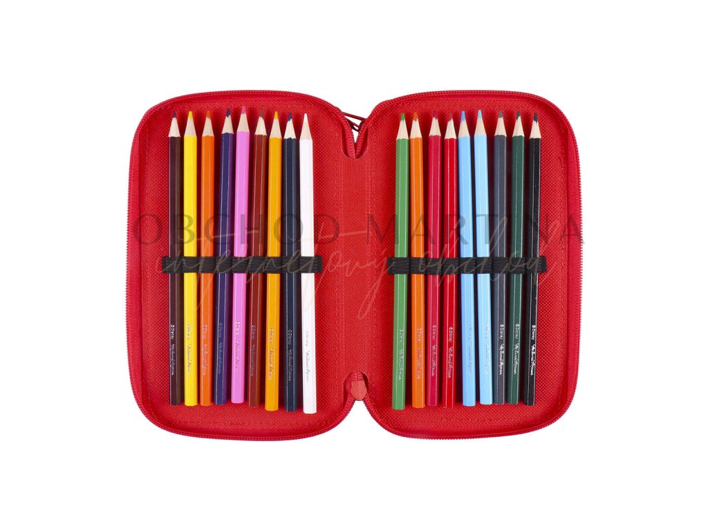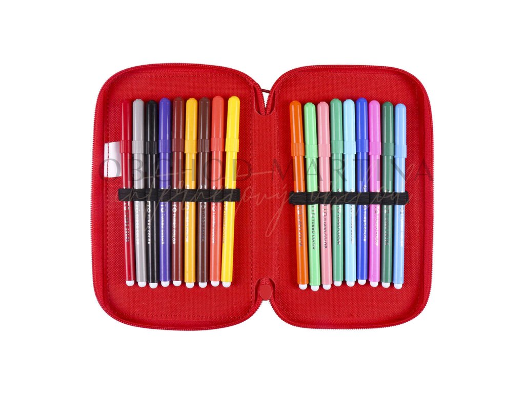 Tříkomorový rozkládací školní penál od španělského výrobce. Penál má 3 přihrádky uzavírané na zip. Ideální pro všechny, kteří mají rádi pořádek ve svém penálu. Každý kus vybavení zde najde své místo. V jedné přihrádce jsou fixy, ve druhé pastelky a ve třetí potřebné školní pomůcky. Veškeré vybavení s prvky označenými logem.