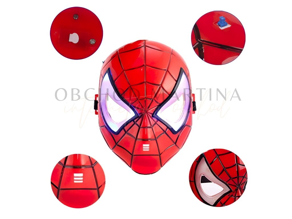 Detailně propracovaný design masky zachycuje ikonický vzhled oblíbeného hrdiny – červená barva s černou pavučinovou strukturou a výrazné bílé oči. Díky zabudovaným LED světýlkům maska září ve tmě a dodává hraní nebo kostýmovým večírkům nezapomenutelnou atmosféru.