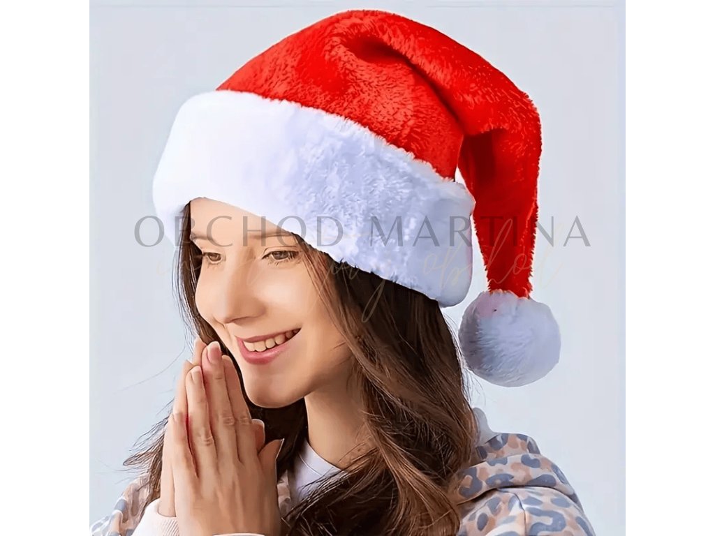 Tradiční červená čepice Santa z kvalitní tkaniny bez peří je ideální pro sváteční chvíle. Skvělá jako vánoční doplněk i stylová dekorace do domácnosti.