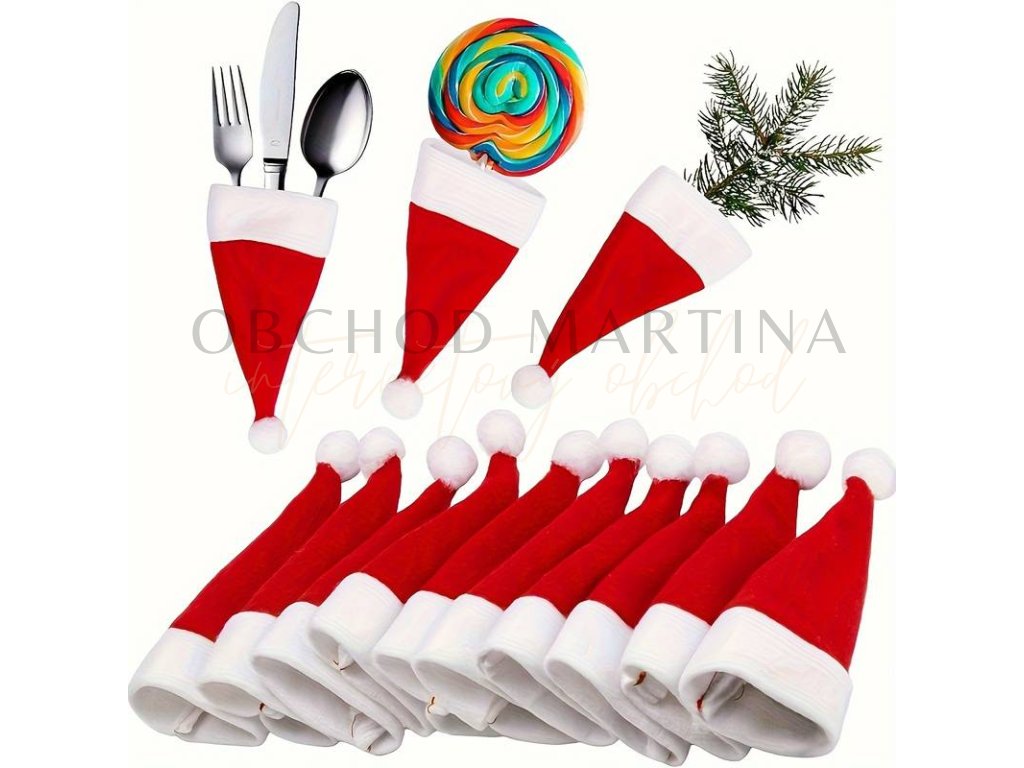 Vánoční obaly na příbory - Santa čepice 10ks