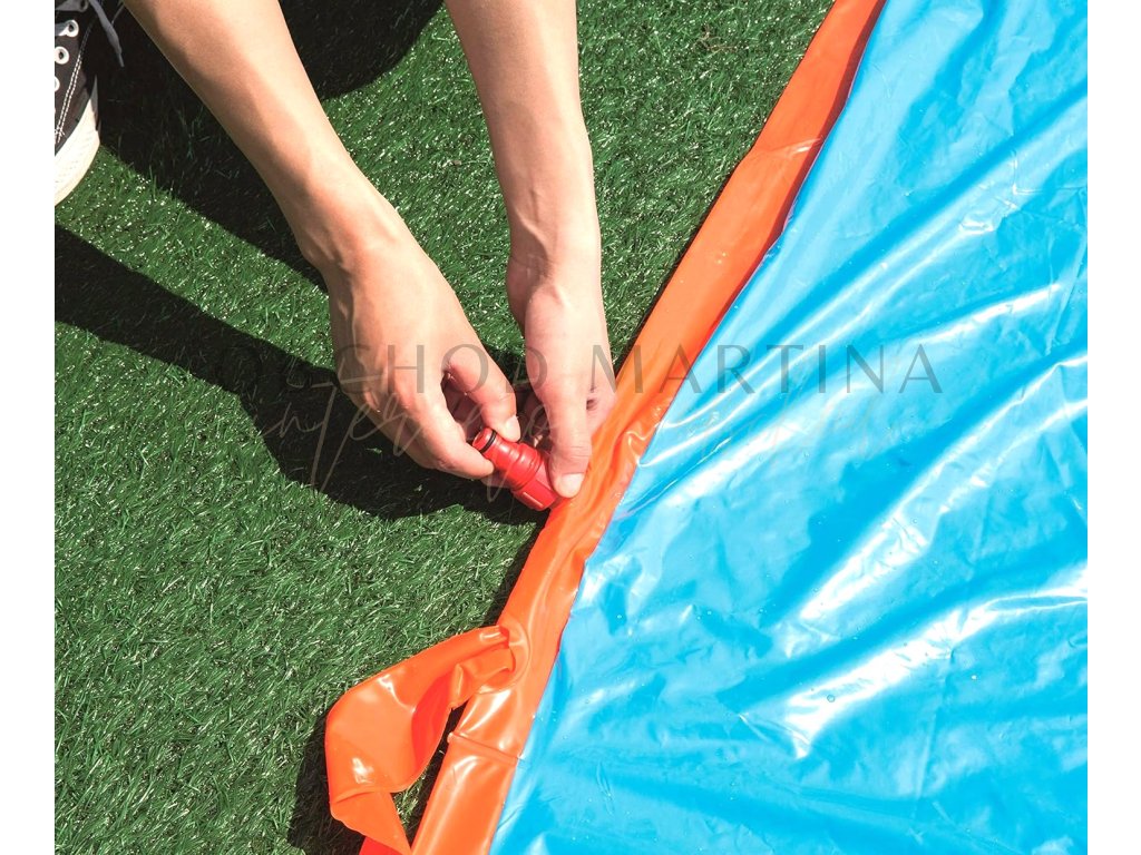 Kombinace dlouhé skluzavky a širokého přistávacího bazénu. Skluzavka je vyrobena z kvalitního a odolného materiálu zaručujícího bezpečnost a dlouhou trvanlivost. Součástí je také modré plavidlo, které zvyšuje zábavnost jízdy a dodává extra porci adrenalinu. Výrazné modré zbarvení plavidla v kombinaci s jasnými barvami skluzavky zaujme na první pohled a je vizuálně přitažlivé. Instalace skluzavky je velmi jednoduchá a nezabere mnoho času. Je ideální pro použití na zahradě nebo chatě. Přináší nejen osvěžení v horkých letních dnech, ale zaručuje také nekonečné hodiny zábavy pro děti i dospělé.