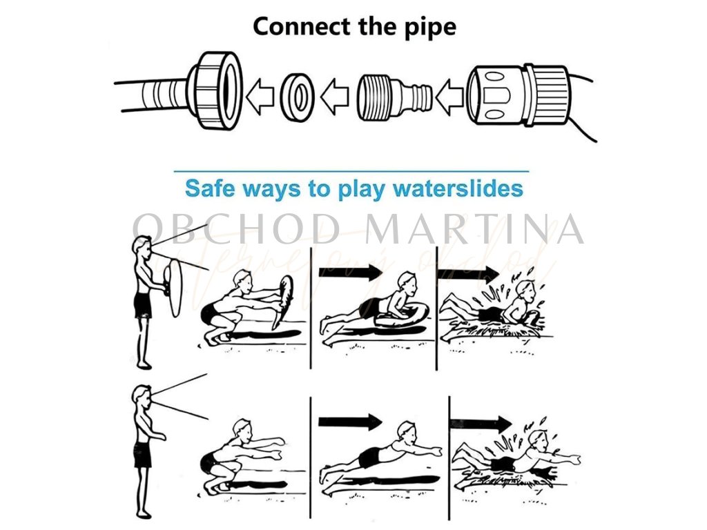 - připojte skluzavku na zahradní hadici s minimálním tlakem 1,5 bar